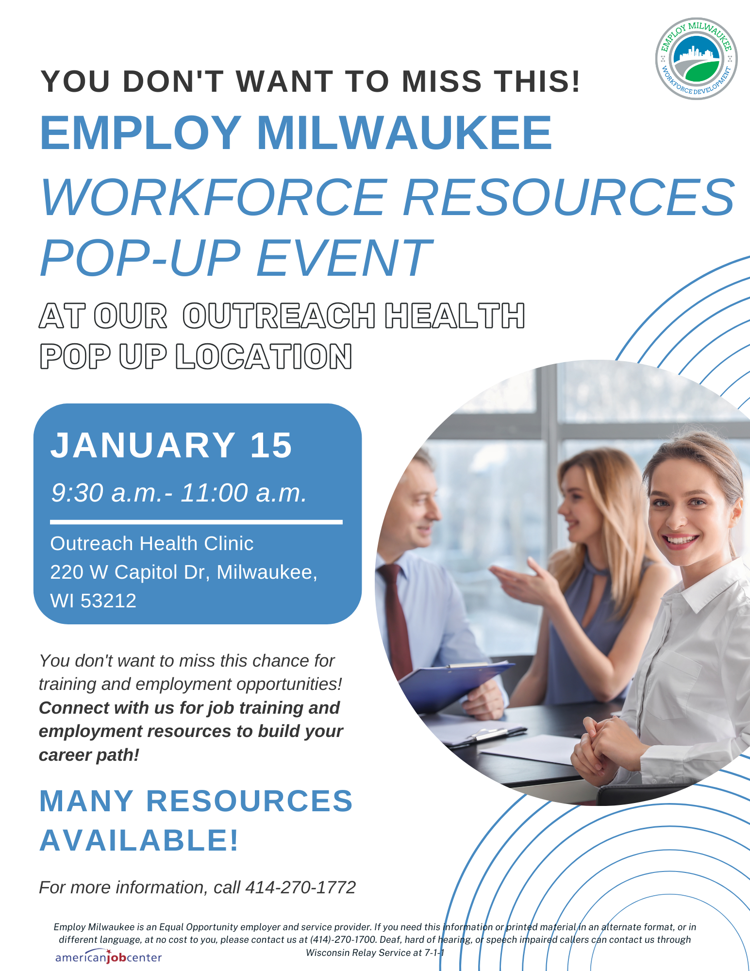 You don't want to miss this chance for training and employment opportunities! Connect with us for job training and employment resources to build your career path!