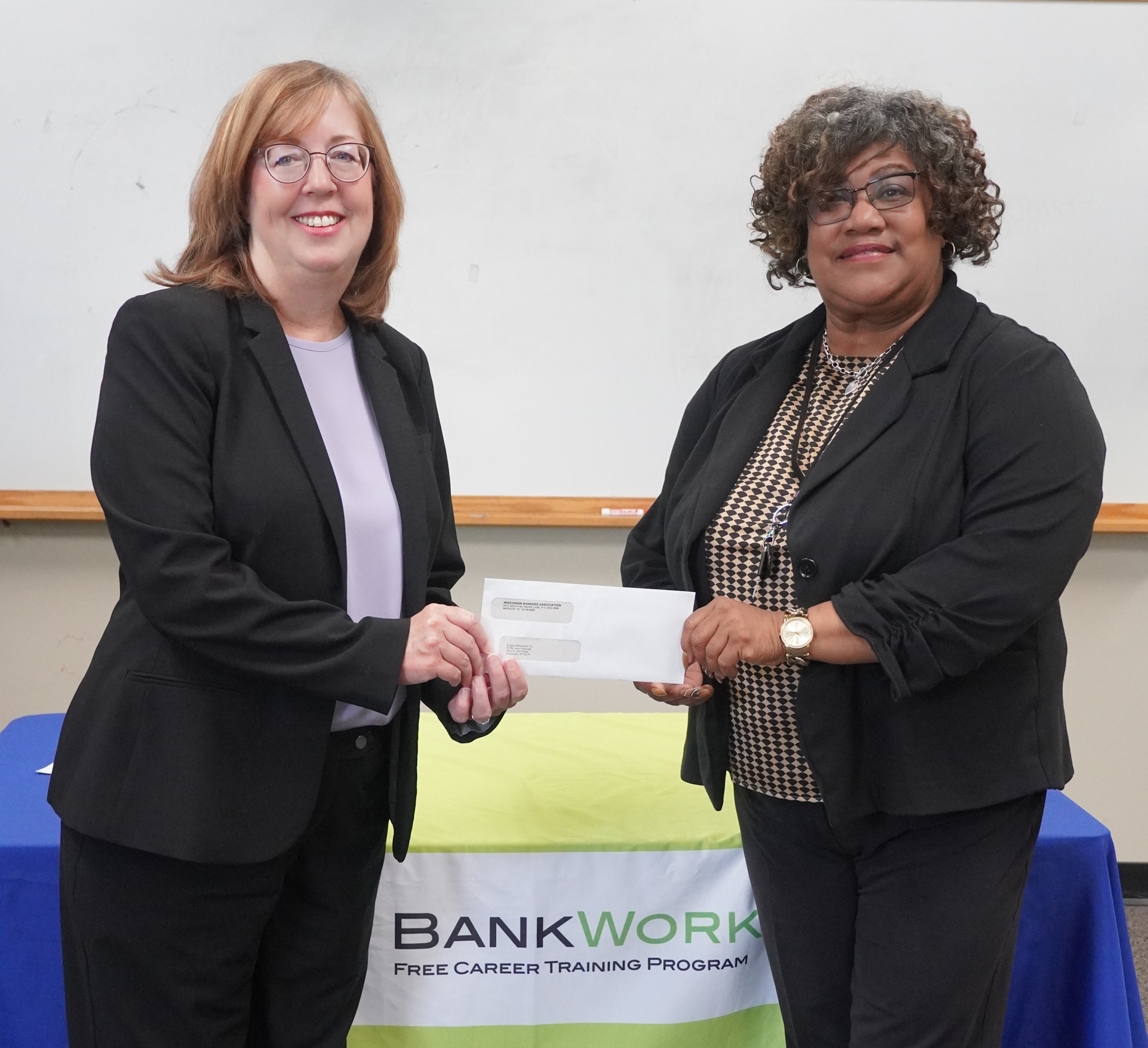 BankWork$ features a nationally recognized curriculum co-developed by financial services employers. Locally, BankWork$ is industry-driven with financial institutions participating in class presentations, mock interviews, and the graduation ceremony, which includes a hiring event where graduates are interviewed for open positions.