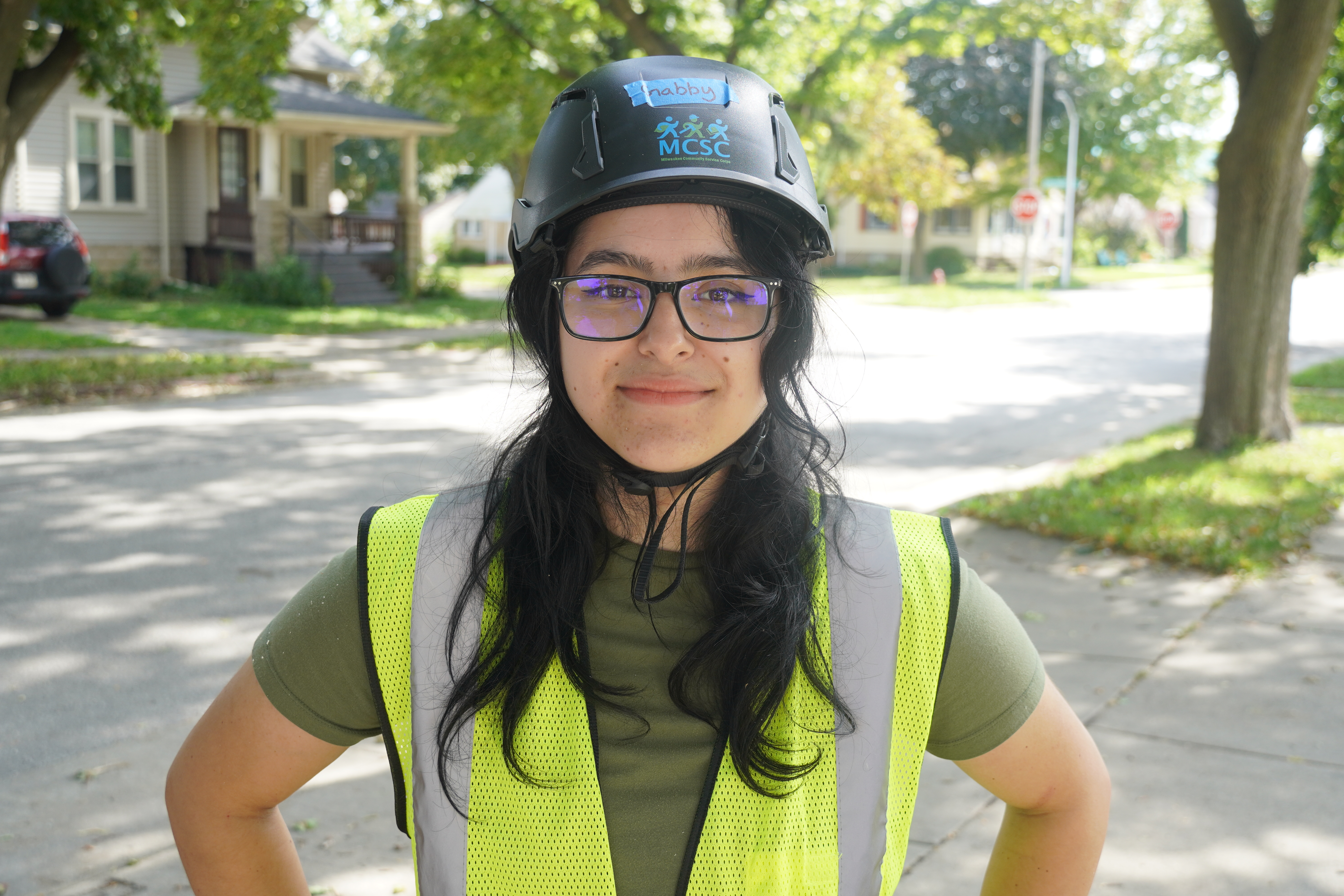 Prior to the pre-apprenticeship, Gabby completed the Fresh Coast Ambassador program, which connects Milwaukee high school students with careers in green infrastructure, when she attended a demonstration day with the city. Ambassadors planted trees and went into a bucket lift. This experience led to her interest in forestry and her current pre-apprenticeship.